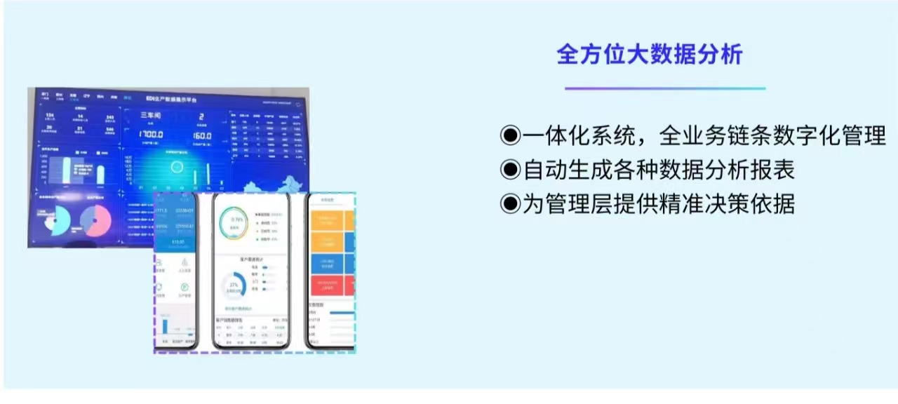 -管理系统采用工业互联网技术,可跨设备对接采集企业现有智能终端上的数据,可跨平台对接企业现有ERP系统、财务系统等,打通企业各环节数据管理,轻松实现跨部门实时协作管理。